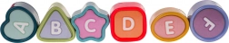 Z jednej strony dachowy ksylofon z pałeczką, z drugiej sorter 6 kształtów rozwijający motorykę i logikę. W zestawie wysuwany uchwyt do przenoszenia.