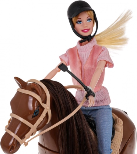 Ten atrakcyjny zestaw łączy świat lalek i koni – idealny dla małych miłośników jeździectwa. Lalka ma ruchome ręce, nogi i głowę oraz piękne długie włosy. Konik jest zasilany 3× AA (w zestawie) i potrafi ruszać do przodu, poruszać głową oraz rżeć, dzięki czemu zabawa jest maksymalnie autentyczna.