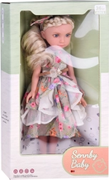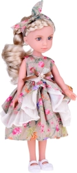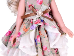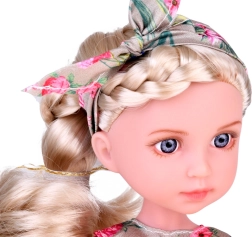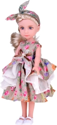Ta czarująca lalka to perfekcyjny wybór dla każdej małej miłośniczki mody. Z długimi blond włosami splecionymi w elegancki warkocz, ubrana jest w elegancką kwiecistą sukienkę zdobioną falbanami, którą uzupełnia kwiecista opaska i białe buciki. Cały styl jest po prostu olśniewający!