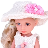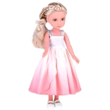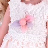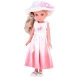 Ta lalka ma długie blond włosy splecione w elegancki warkocz, ubrana jest w urocze koktajlowe sukienki w odcieniach różu ze srebrnymi ramiączkami. Ozdobiona jest delikatnym kwiatkiem, a na sobie ma kremowe bolerko. Na głowie nosi stylowy kremowy kapelusz, który dodaje jej uroku i elegancji, a na nogach ma białe buciki. Wygląda po prostu uroczo!