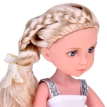 Lalka wykonana jest z plastiku z ruchomymi kończynami. Urocza buzia z pięknymi oczami zachęca do zabawy każdą dziewczynkę. Dzięki starannemu wykonaniu detali stanie się wierną towarzyszką zabaw oraz piękną ozdobą dziecięcego pokoju. Świetny jako prezent dla dziewczynek, które uwielbiają tworzyć modowe stylizacje i organizować eleganckie przyjęcia.