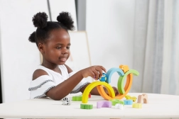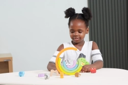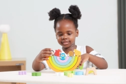 Ta montessori układanka łączy radość z układania tęczy z wyobraźnią podczas zabawy uroczymi zwierzątkami. Dzieci mogą warstwowo układać kolorowe łuki, tworzyć tunele i mosty, budować przestrzeń dla zwierzątek oraz odkrywać, jak działa balansowanie i stabilność. Zabawa naturalnie rozwija małą motorykę, percepcję sensoryczną i kreatywność.