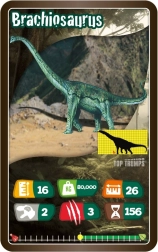 TOP TRUMPS – Dinozaury oferuje emocjonujące porównywanie parametrów legendarnych prehistorycznych stworzeń. Każda karta zawiera wciągającą ilustrację i kluczowe statystyki, dzięki którym gracze mogą sprytnie dobierać kategorie i przechytrzać rywali. Kompaktowy tuck box ułatwia przenoszenie, więc zabierzesz grę wszędzie – na wycieczkę, wakacje czy w odwiedziny.