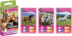TOP TRUMPS – Konie, kucyki i jednorożce to dynamiczna rodzinna gra, w której spotkasz rasy takie jak Connemara czy koń islandzki. Każda karta zawiera zdjęcia, ciekawostki i zestaw parametrów do porównywania. Celem jest wygrywać pojedynki w kategoriach i zdobyć wszystkie karty przeciwników.