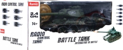 | Czołg działa na częstotliwości 2,4 GHz, co umożliwia jednoczesną jazdę wielu graczom. Czołg jest wyposażony w świetne efekty dźwiękowe i świetlne. Jest zasilany akumulatorem ładowalnym. Akumulator i ładowarka do czołgu stanowią część zestawu. Kup czołgi w różnych kolorach i możesz rozegrać wielką bitwę, w tym Wielką bitwę czołgową, w której każdy weźmie udział bez względu na wiek. Obrotowa wieża jest wyposażona w lufę z systemem podczerwieni. Po wycelowaniu i precyzyjnym strzale w kierunku drugiego pojazdu usłyszysz realistyczny dźwięk trafienia celu. Potwierdzenie trafienia wyłącza jedno z czterech świateł na czołgu przeciwnika. Po czterech trafieniach pojazd przeciwnika zostanie unieruchomiony na 15 sekund! Bitwa zostaje wygrana i możesz rozpocząć nową grę od początku. Podwozie z gąsienicami doskonale imituje jazdę prawdziwego czołgu. Intuicyjne sterowanie czołgiem nie sprawia trudności i można je opanować już po kilku próbach. Pojazd pokonuje przeszkody o wysokości do 3 cm. Realistyczny odrzut pojazdu podczas strzału – podczas strzału z działa pojazd zachowuje się na polu bitwy jak prawdziwy czołg. Ma otwierany właz na wieży, do którego można wstawić kierowcę czołgu z karabinem maszynowym. Sterowanie – pojazd można prowadzić do przodu, do tyłu, skręcać w prawo i w lewo oraz obracać się w miejscu jak prawdziwy czołg. - zasięg do ok. 40 metrów, - czas ładowania ok. 4 godziny, - prędkość maksymalna do ok. 6 km/h, - czołg może obracać się o 360 stopni, dodatkowo wieża sterowana pilotem obraca się maksymalnie o 320 stopni. - lufa umieszczona w górnej części czołgu porusza się w górę i w dół. Efekty dźwiękowe: - dźwięk pracy silnika, - dźwięk strzału z działa. Efekty świetlne: - świecące przednie reflektory pojazdu, - elektroniczny wskaźnik mocy z tyłu pojazdu. | |