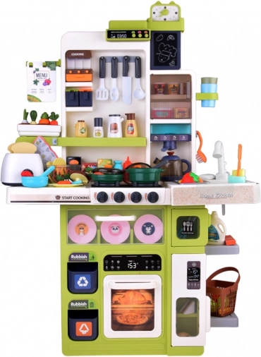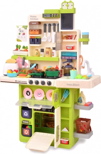 Odkryj realistyczną kuchnię dla dzieci, która oferuje efekty świetlne i dźwiękowe, bezpieczny efekt pary podczas „gotowania” oraz bieżącą wodę z kranu. W zestawie znajduje się 101 akcesoriów do niekończącej się zabawy w gotowanie, pieczenie i sprzątanie. Stabilna konstrukcja, otwierane drzwiczki, panel muzyczny, tablica do pisania kredą oraz zegar edukacyjny wspierają wyobraźnię, małą motorykę i umiejętności społeczne dzieci.