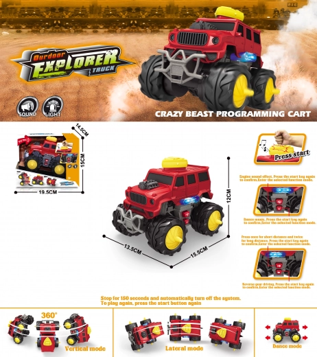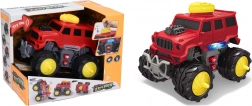 Auto terenowe z efektami 15,5 cm zapewnia mnóstwo zabawy dzięki efektom świetlnym, dźwiękowym i ruchowym uruchamianym po naciśnięciu przycisków. Sterowanie jest proste za pomocą przycisku na dachu i przycisków bocznych (dźwięk silnika, muzyka, jazda do przodu i do tyłu), a dzięki 3× bateriom AAA w zestawie jest gotowe do działania od razu.