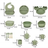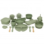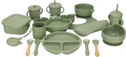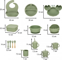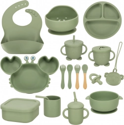 Ten 19-częściowy zestaw zielonych silikonowych naczyń jest zaprojektowany z myślą o bezpieczeństwie i komforcie waszych dzieci. Dzięki trwałemu silikonowi bez szkodliwych substancji te produkty są idealne dla delikatnych dziecięcych ust. Kolor i wzór czynią każde posiłki zabawnymi i wspierają rozwój zdolności manualnych.