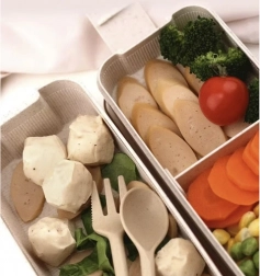 Ten lunchbox jest podzielony na dwie oddzielne części, górną o pojemności 350 ml i dolną o pojemności 400 ml, co pozwala na oddzielne przechowywanie różnych potraw bez mieszania smaków i zapachów.