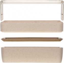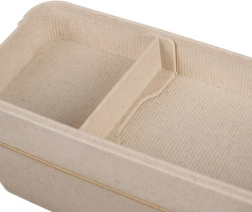 Pudełko wykonane z materiałów przyjaznych dla środowiska, takich jak słoma pszenna, co gwarantuje trwałość i łatwość konserwacji.
