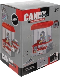 Sterowanie i MECHANIZM łapania cukierków - Maszyna do łapania cukierkówdziała jak prawdziwy automat.Na przedniej stronie zabawkiznajdują siętrzy joysticki z wytrzymałego PS, któreumożliwiają pełną kontrolę nad pazurem.Pierwszy joystick porusza mechanizmem do przodu i do tyłu, środkowy w prawo i w lewo, a trzeci opuszcza i podnosi stalowy pazur,przymocowany do portalu solidnym łańcuszkiem z ogniwem. Cały proces chwytania cukierków jestwyjątkowo płynny i realistyczny, a radość z łapania ulubionych łakoci dodatkowo potęguje przyjemne emocje.Po złapaniu cukierkasłodycz zgrabnie trafia doczerwono podświetlonego otworu, co nadaje całej zabawie dodatkowego uroku.