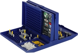 Po otwarciu plastikowe etui zamienia się w podwójną planszę z dwiema siatkami do ataku i obrony. Każdy gracz rozstawia swoje statki i za pomocą kołków oznacza trafienia i nietrafienia. Celem jest odkrycie pozycji przeciwnika i zatopienie wszystkich jego statków. Kompaktowa konstrukcja z przegródkami na elementy gwarantuje porządek i łatwe przenoszenie.