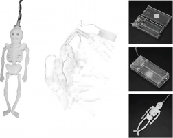 Stwórz w domu właściwy halloweenowy klimat dzięki łańcuchowi LED w kształcie szkieletów. Na 2‑metrowym przewodzie rozmieszczono 10 świecących szkieletów o ciepłobiałym świetle. Dzięki zasilaniu bateryjnemu łatwo umieścisz go gdziekolwiek, bez gniazdka. Oszczędne diody LED zapewniają długą żywotność, dekoracja jest lekka, wytrzymała i łatwa do zawieszenia.