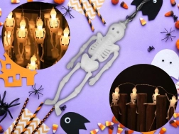Stylowa dekoracja świetlna, która w mgnieniu oka zamieni wnętrze i osłonięty teren zewnętrzny w tajemniczą, halloweenową scenerię. Każdy z 10 miniaturowych szkieletów ma oddzielną diodę LED, dzięki czemu światło rozkłada się równomiernie na całej długości łańcucha. Ciepła biel tworzy przyjemną, a zarazem mroczną poświatę.