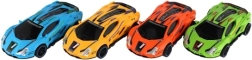 Każde autko ma kompaktowe wymiary 16 × 8 × 4 cm, które doskonale leżą w dłoni. Zestaw oferuje cztery atrakcyjne kolory (niebieski, żółty, pomarańczowy, zielony), więc dzieci mogą urządzać własne wyścigi i tworzyć kolekcję modeli.