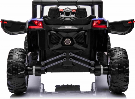 Praktyczne detale, takie jak otwierane drzwi, światła LED z przodu i z tyłu oraz czytelny panel z wskazaniem poziomu naładowania, zwiększają komfort użytkowania. Wnętrze z fotelem z ekoskóry i pasami bezpieczeństwa zapewni dzieciom wygodę, a panel audio z MP3/USB/Bluetooth zadba o ulubioną muzykę.