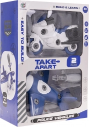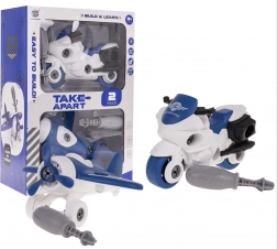 Rozkładalny zestaw zawiera motocykl i samolot razem z dwiema śrubokrętami, co pozwala dzieciom rozłożyć pojazdy na części i złożyć je ponownie. Dodatkowo mogą złożyć statek według instrukcji obrazkowej.