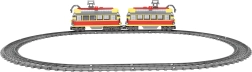 - Dwuwagonowy tramwaj z torami i przystankiem