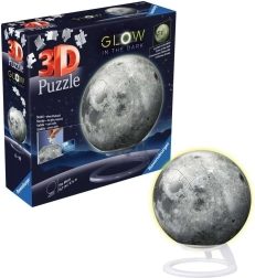 Ravensburger 3D Świecące Puzzle Księżyc to doskonałe połączenie zabawy i dekoracji. Zestaw zawiera 73 elementy, które dzięki specjalnej technologii EasyClick łatwo i precyzyjnie się łączą. Po złożeniu tworzą solidną i stabilną kulę.