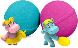 Po rozpuszczeniu kula tworzy piękną różową lub niebieską pianę i odsłania jedną z sześciu kolekcjonerskich figurek hipopotamów: