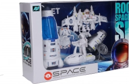 W opakowaniu znajduje się bogaty zestaw akcesoriów, który poszerza możliwości zabawy: sputnik, satelita, latające urządzenie oraz dwa poduszkowce. Dzieci mogą zbudować własną stację kosmiczną, planować starty rakiety i symulować loty badawcze.