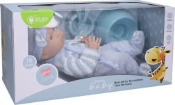 To realistyczne niemowlę w mięciutkim, niebieskim kombinezonie jest świetnym towarzyszem codziennej zabawy. Dzięki wysokości 40 cm dobrze leży w dziecięcych dłoniach, a ubieranie i układanie do snu jest łatwe. Zestaw zawiera wszystko, co potrzebne do kompletnych rytuałów pielęgnacji i karmienia.