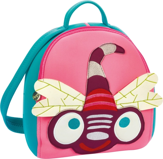 Uroczy dziecięcy plecak z motywem ważki zachwyca radosnym designem i funkcjonalnym wykonaniem. Dzięki trwałemu poliestrowi sprawdzi się w codziennym użytkowaniu, a kompaktowe wymiary 10 × 19 × 24 cm ułatwiają noszenie nawet najmłodszym.