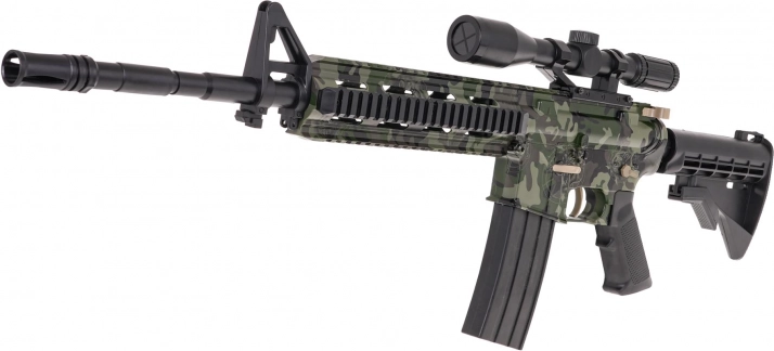 Duży, taktyczny karabin M4 na żelowe kulki jest idealny do gier na zewnątrz i treningu celności. Dzięki dwóm trybom ognia możesz cieszyć się szybką akcją lub precyzyjnymi pojedynczymi strzałami. Dołączony celownik optyczny z powiększeniem można precyzyjnie dostroić pokrętłem, aby cel zawsze był w krzyżu.