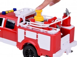 Dzięki gumowemu wężowi, który można podłączyć do zbiornika wodnego pojazdu, dzieci mogą cieszyć się realistycznym gaszeniem pożarów.