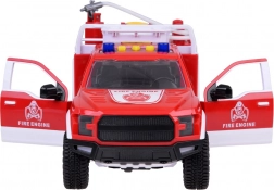 Wóz strażacki wyposażony jest w przyciski do efektów dźwiękowych otwierania drzwi, syreny i klaksonu. Światła migają podczas używania tych przycisków.