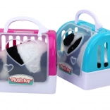 W zestawie znajduje się praktyczny transporter w pastelowych kolorach, w którym panda może być łatwo przenoszona w różne miejsca. Wystarczy włożyć dwie baterie AA (1.5V), które jednak nie są częścią zestawu.