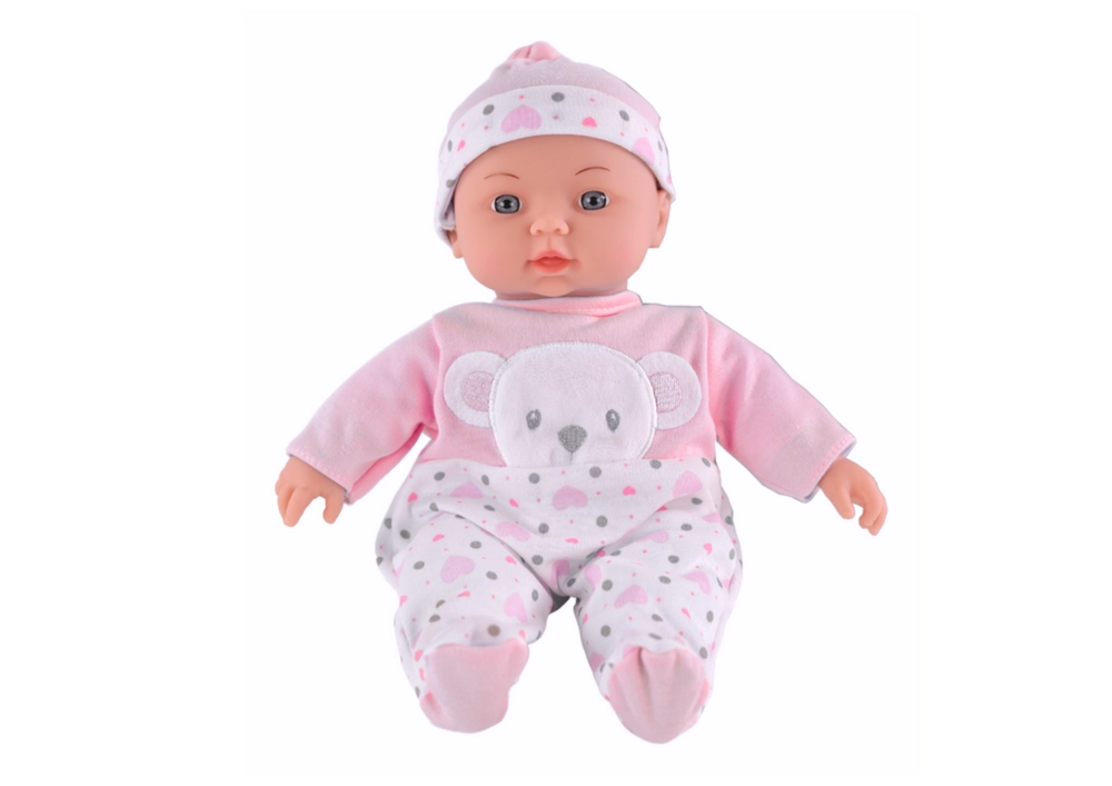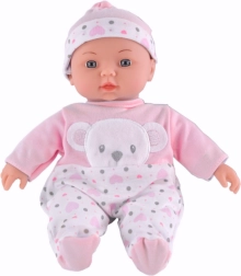 Nasza lalka ubrana w uroczy różowy śpioszek z misiem, zapinany z tyłu na praktyczny rzep, oraz w słodką czapeczkę to doskonały towarzysz dla najmłodszych. Ta niezwykła lalka nie tylko wspiera kreatywną zabawę, ale także uczy opiekuńczości, odpowiedzialności i empatii już od najmłodszych lat.