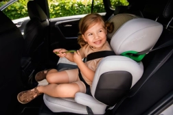 - Widoczny wskaźnik potwierdzający prawidłowe połączenie między bazą ISOFIX a fotelikiem, zmniejszający ryzyko nieprawidłowego montażu