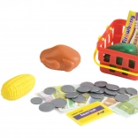 Zestaw zawiera wszystko, co potrzebne do obsługi wyimaginowanego sklepu, w tym koszyk z akcesoriami, grę w pieniądze i kartę płatniczą. Dla dzieci jest możliwość praktycznego liczenia bezpośrednio na kasie, co wspiera ich umiejętności matematyczne i kreatywność.