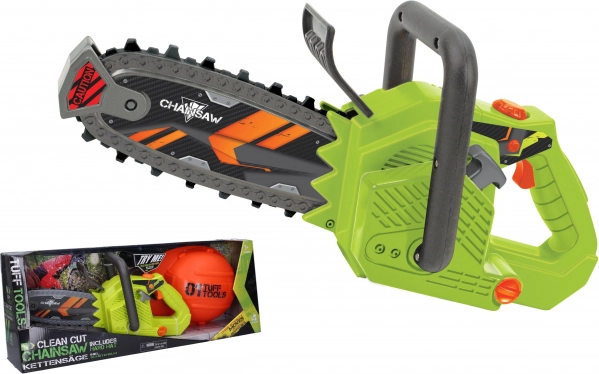 Ta dziecięca piła łańcuchowa Tuff Tools jest idealna dla dzieci, które lubią bawić się w mechanika lub drwala. Po naciśnięciu bocznego przycisku piła „startuje”, a spust uruchamia ruch łańcucha oraz efektowne odgłosy cięcia, które dodają zabawie autentyczności.