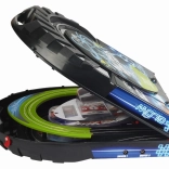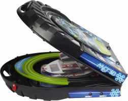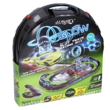 Ten składany, świecący tor wyścigowy to idealny wybór do domowych rozgrywek. Dzięki wymiarom 69 × 49,5 × 10,5 cm łatwo ustawisz go na stole lub podłodze, a po zabawie szybko złożysz. Elementy świetlne dodają akcji odpowiedniego charakteru i przyciągają uwagę dzieci w każdym wieku.