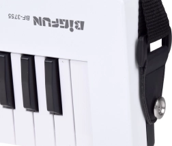 Na start i do regularnych ćwiczeń służy bogate wyposażenie: 4 brzmienia, 4 rytmy i 10 utworów demo. Praktyczne funkcje, takie jak wibrato, regulacja głośności i włącznik on/off, zapewniają wygodne granie bez zbędnych komplikacji. Dzięki ładowaniu USB z wbudowanym akumulatorem 3,7 V odpada troska o baterie.