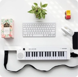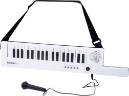 Rozwiń dziecięcą kreatywność z kompaktowym elektronicznym instrumentem, gotowym do gry zawsze i wszędzie. Wbudowany głośnik, dołączony mikrofon i pasek na ramię zmieniają klawisze w stylowy „keytar” dla małych muzyków. Obsługa jest intuicyjna i zachęca do odkrywania brzmień i rytmów.