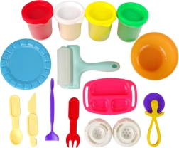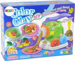 Maszynka do ciasta swoją budową przypomina prawdziwą maszynę do makaronu, więc Twój mały kucharz może bezpiecznie poeksperymentować w kuchni bez marnowania prawdziwych produktów. Główną częścią maszynki jest prasa, dzięki której można wycisnąć kulkę ciasta i nadać jej charakterystyczny kształt. Wymienne końcówki pozwalają stworzyć kilka różnych rodzajów makaronu. Dostępna jest forma standardowych spaghetti oraz makaronu w kształcie świnki.