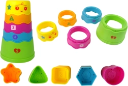 - 5‑poziomową piramidkę z otworem na kulki – układaj od najmniejszej do największej.