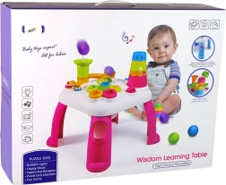 Stolik jest stabilny i wytrzymały, wykonany z bezpiecznych, nietoksycznych materiałów, zgodnych z normami dla zabawek. Idealny jako pierwsze interaktywne centrum aktywności dla dzieci od 18 miesięcy.