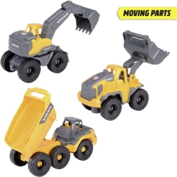 Zestaw budowlany VOLVO z trzema dopracowanymi maszynami budowlanymi ucieszy małych budowniczych od 3 roku życia. Ładowarka kołowa, koparka i przegubowa wywrotka w skali 1:36 mają ruchome elementy oraz wolnobieg. Każdy pojazd ma 16 cm długości, a w kultowych barwach żółty/szary zapewnia realistyczną zabawę w domu i w podróży.