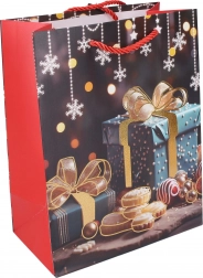 Torebka wykonana jest z wysokiej jakości papieru i wyposażona w mocne uchwyty dla wygodnego przenoszenia. Do wyboru masz 4 warianty wzorów, które podkreślą magię Świąt i nadadzą Twojemu prezentowi reprezentacyjny wygląd.