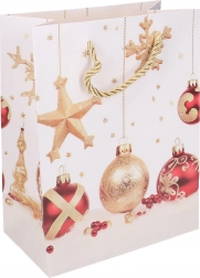 Szukasz szybkiego i efektownego sposobu pakowania świątecznych prezentów bez żmudnego owijania papierem? Świąteczna torebka prezentowa w rozmiarze M oferuje niezawodne i eleganckie rozwiązanie dla książek, kosmetyków, akcesoriów i innych średniej wielkości upominków. Wysoka jakość wykonania ze świąteczną grafiką doda Twojemu prezentowi odpowiedniej atmosfery.