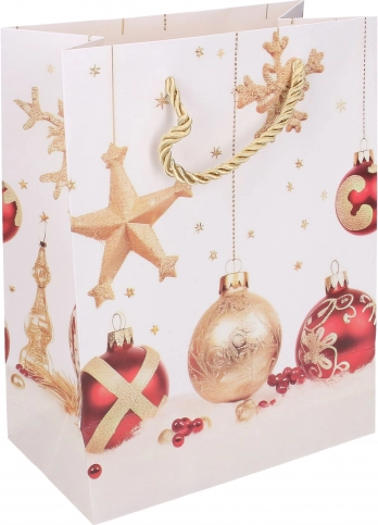 Szukasz szybkiego i eleganckiego rozwiązania do pakowania świątecznych prezentów? Ta torebka prezentowa w rozmiarze S z motywem Święta to doskonały wybór. Dzięki kompaktowym wymiarom idealnie sprawdzi się na drobne upominki, kosmetyki, dodatki lub słodycze. Wysokiej jakości papier i mocne uchwyty zapewniają wygodne noszenie i reprezentacyjny wygląd.