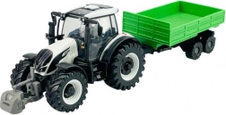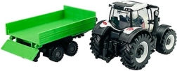 Zieloną przyczepę można łatwo przechylić i wysypać ładunek. Wspiera realistyczną zabawę w rolnictwo i rozwija małą motorykę.