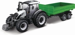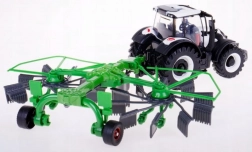 Ten wysokiej jakości model łączy metalowe nadwozie ciągnika z precyzyjnymi plastikowymi dodatkami dla autentycznego wyglądu. Dzięki dużym kołom, kabinie i realistycznym elementom przypomina prawdziłą maszynę, a wywrotna zielona przyczepa poszerza możliwości zabawy i ekspozycji w gablocie.