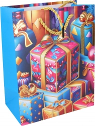 Stylowa świąteczna torebka prezentowa w rozmiarze S (23 × 18 × 10 cm) do szybkiego i eleganckiego pakowania prezentów. Oferuje 4 świąteczne warianty, jest solidna, praktyczna i odpowiednia na małe i średniej wielkości prezenty.