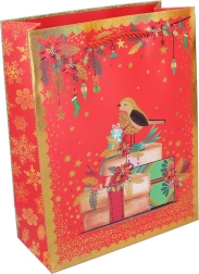 Ta średniej wielkości świąteczna torebka prezentowa jest idealna na książki, kosmetyki, tekstylia oraz mniejsze zestawy upominkowe. Dzięki wytrzymałemu papierowi i wygodnym uchwytom prezenty łatwo przenosić, a elegancki sezonowy design natychmiast wprowadza świąteczną atmosferę.