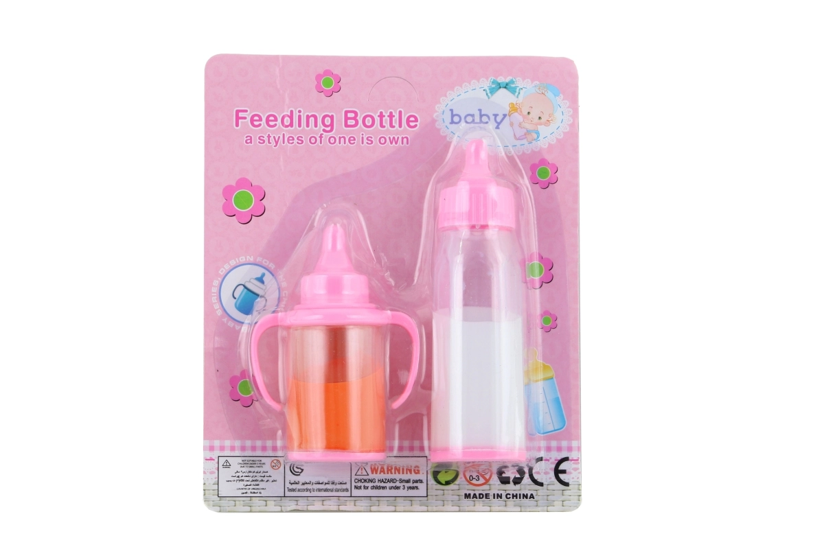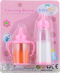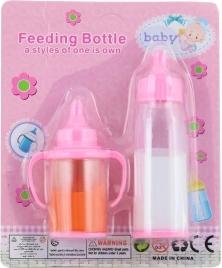 Zestaw buteleczek z jedzeniem dla lalki. Materiał: plastik. Zawiera płyny. Pakowane na kartonie. Wymiary 17×14×3,5 cm. Wiek 3+